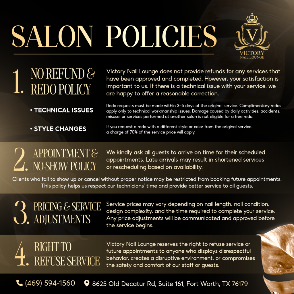 Victory Nail Lounge was born from a simple belief: every visit can be a quiet celebration of individuality, care, and confidence, right in the heart of Fort Worth. Mindful attention and thoughtful service turn each treatment into a gentle ritual, enhancing natural beauty while inviting calm and self-expression.